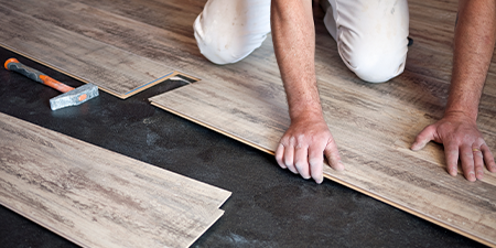 フローリングやクッションフロア、カーペットなどを床材を床にはめ込んでいきます。